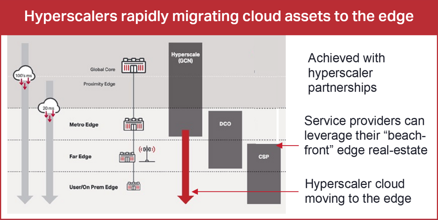 Hyperscalers are leveraging their cloud expertise to offer this Telco Cloud service to mobile network service providers by moving their cloud resources closer to the edge to address this emerging marketing opportunity.