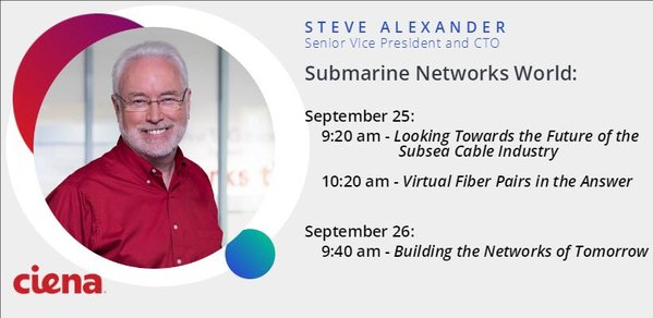 September 25 @ 09:20 – Keynote Panel: “Looking Towards the Future of the Subsea Cable Industry” with Steve Alexander, SVP and CTO, Ciena.